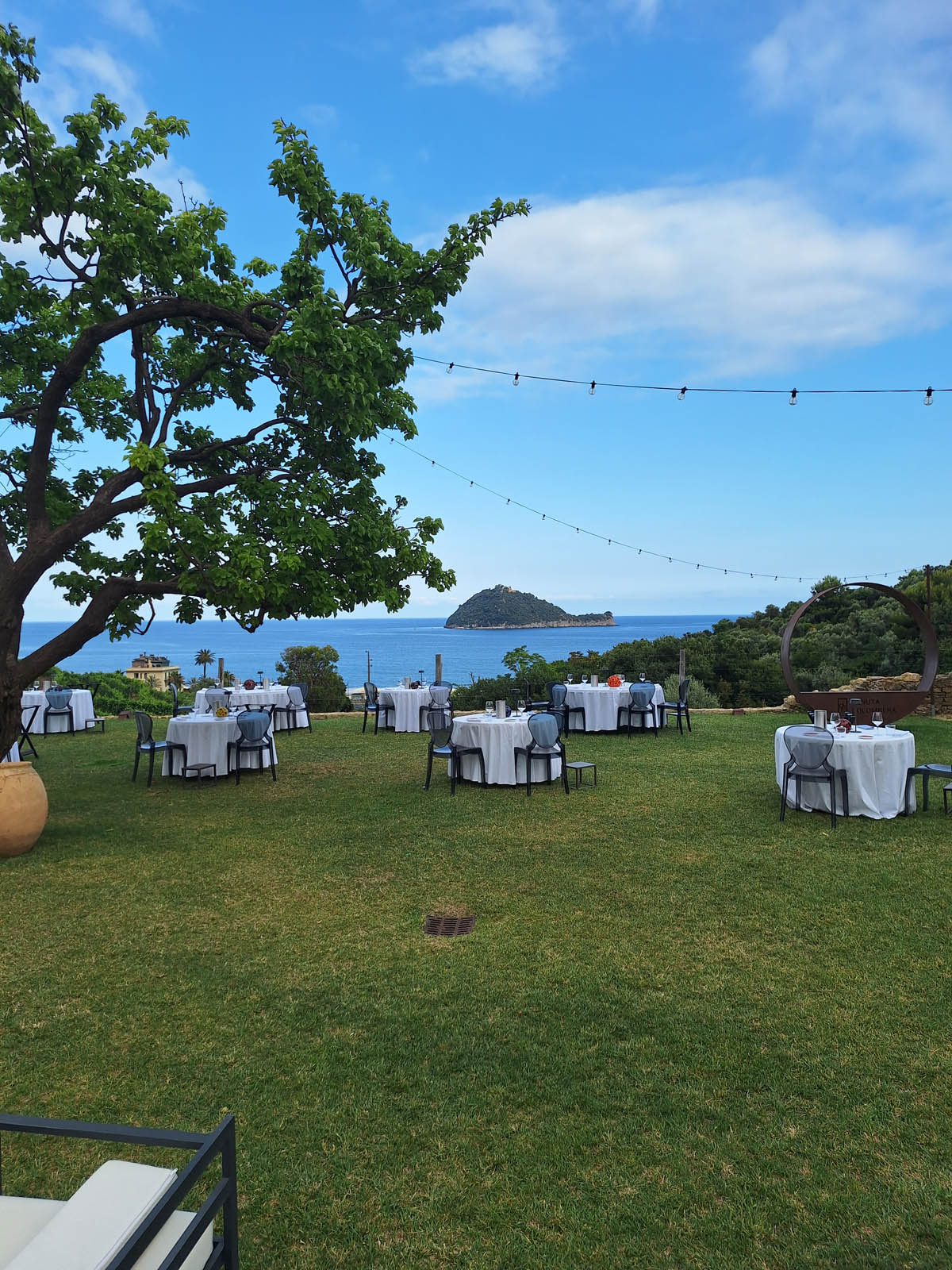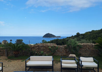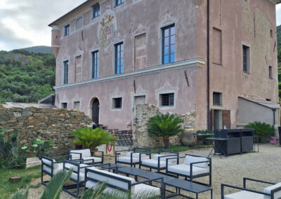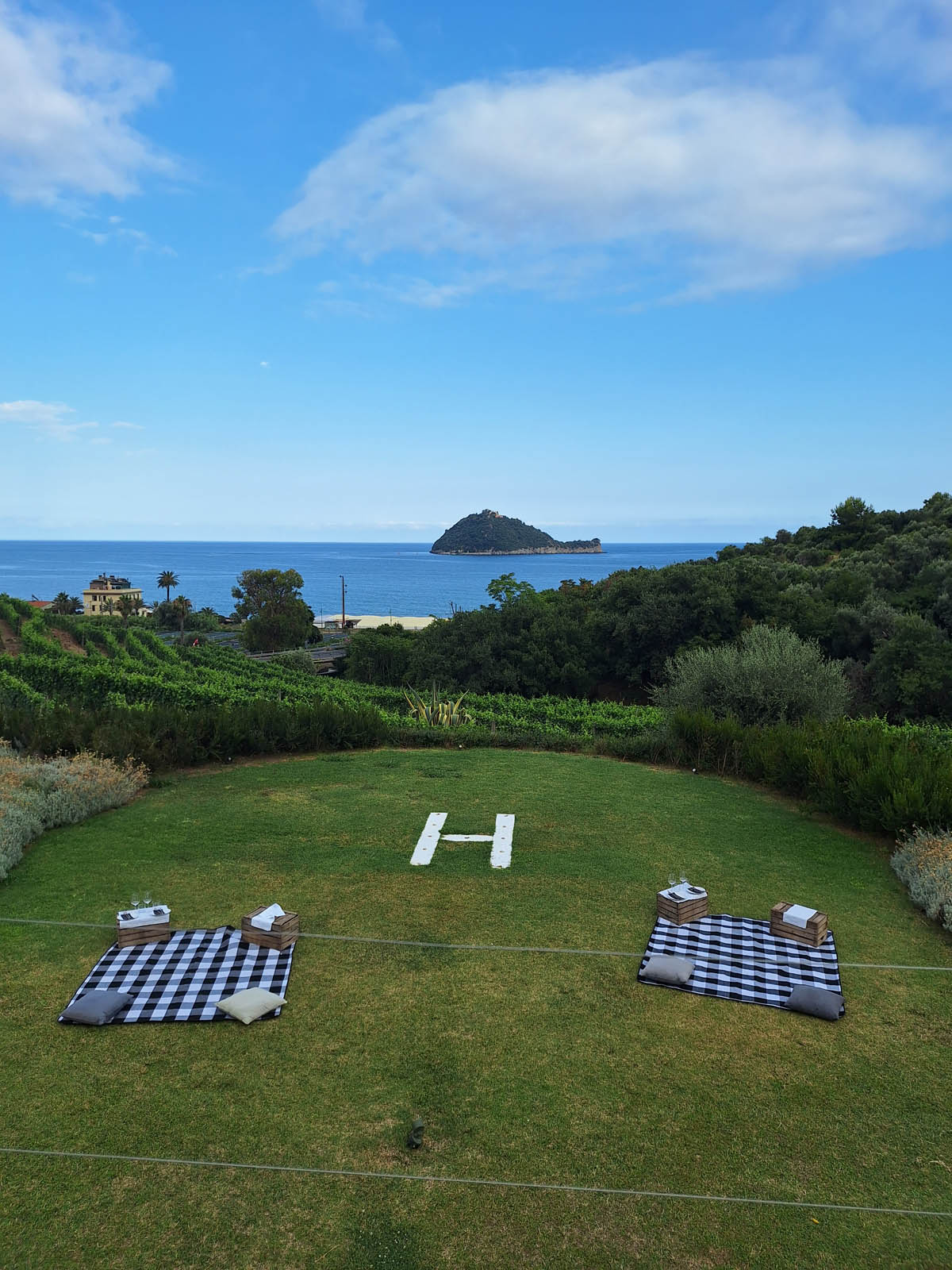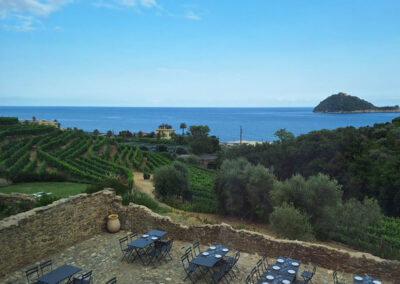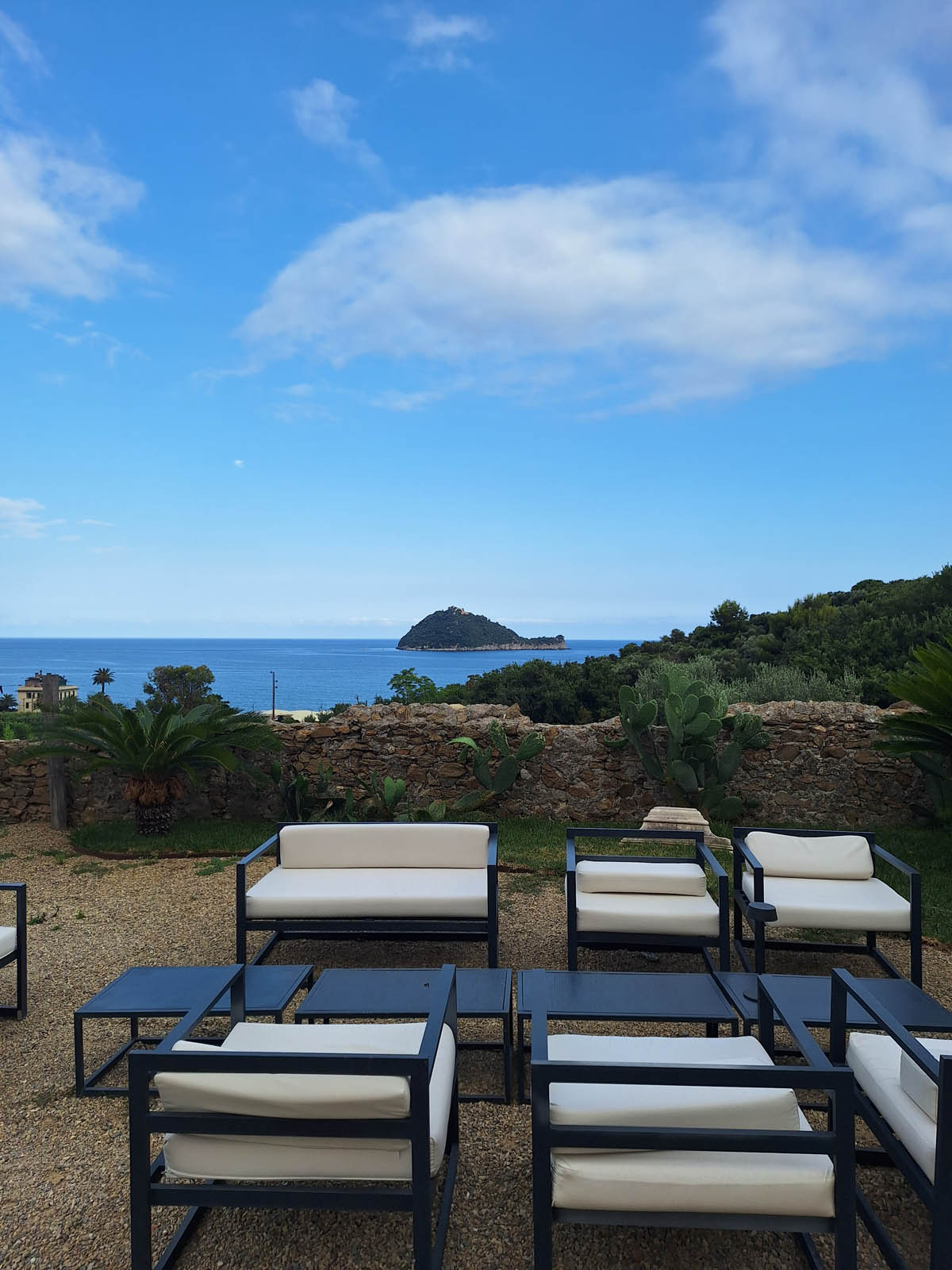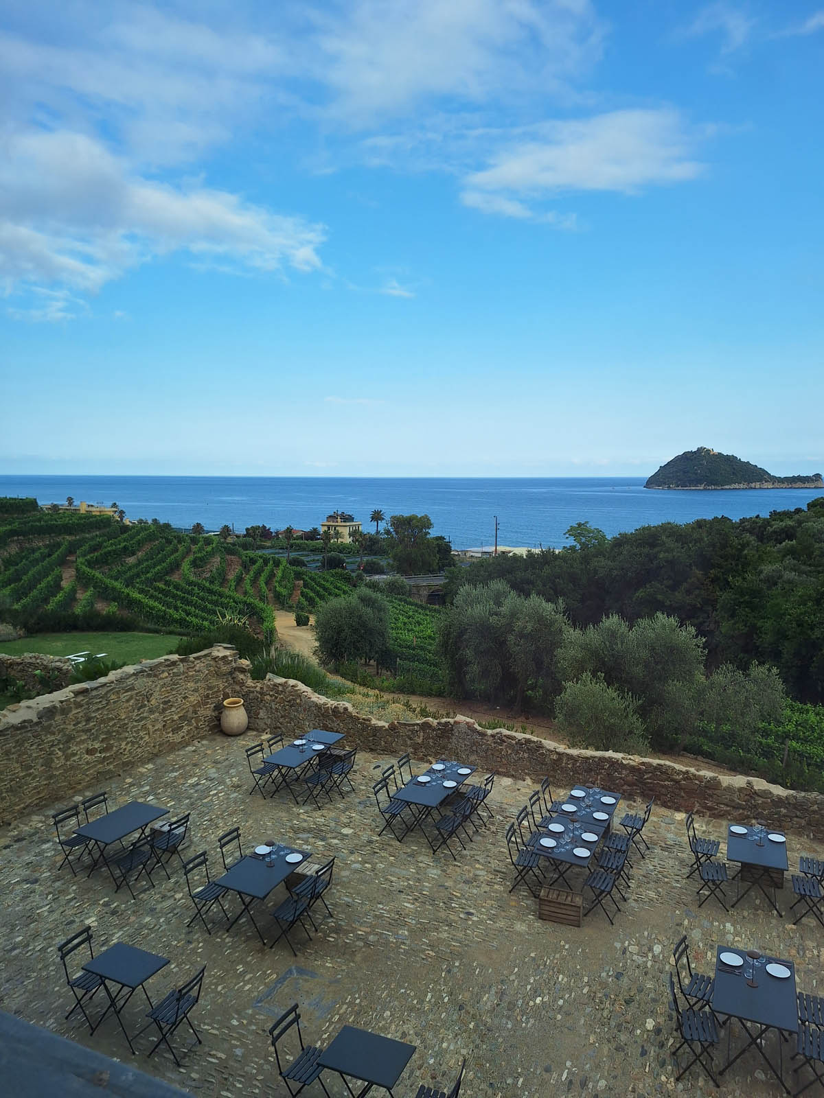 Il paesaggio è molto suggestivo: ci troviamo di fronte al mare, con vista sulla Gallinara, circondati da vigneti e ulivi che donano una sensazione di pace e serenità.